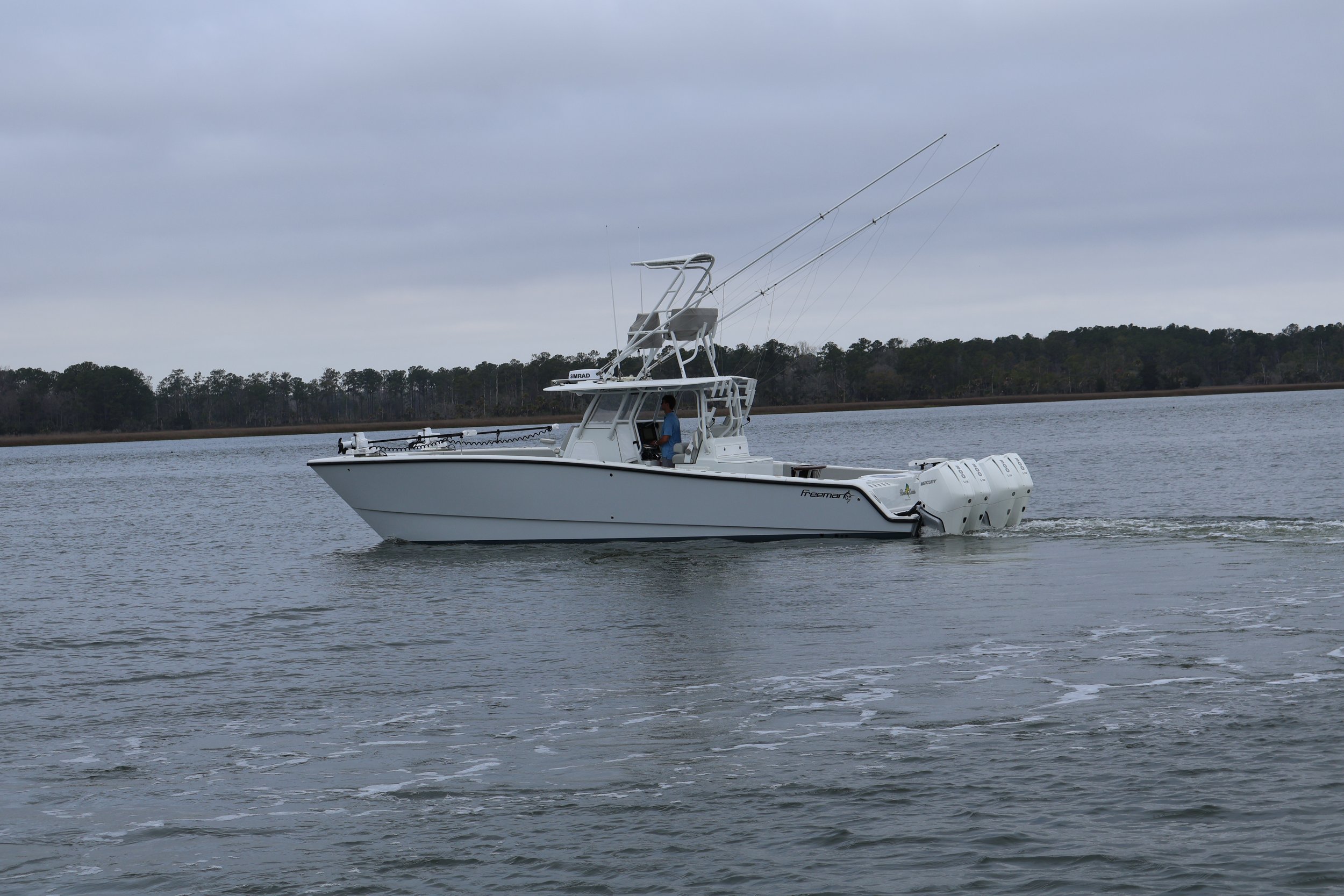The Boat: 37’ Freeman with on-board WiFi and a massive, stable deck.
